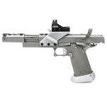 Pistolet ma unikalną na skalę światową jednoczęściową hybrydową lufę 5,7" z kompensatorem, która zwiększa wagę, zapewniając maksymalną stabilność podczas strzelania. Zamek wykonany ze stali nierdzewnej posiada estetyczne nacięcia, które nie tylko świetnie się prezentują, ale dodatkowo go odciążają. Zaczep spustowy, kurek i przerywacz są maszynowo obrabiane zgodnie z najwyższymi światowymi standardami, zapewniając doskonałą pracę na spuście. Pistolet został wyposażony w zupełnie nowy aluminiowy spust z możliwością zmiany profilu języka spustowego na okrągły lub płaski. Ponadto jest dostępny w trzech różnych rozmiarach i kolorach.